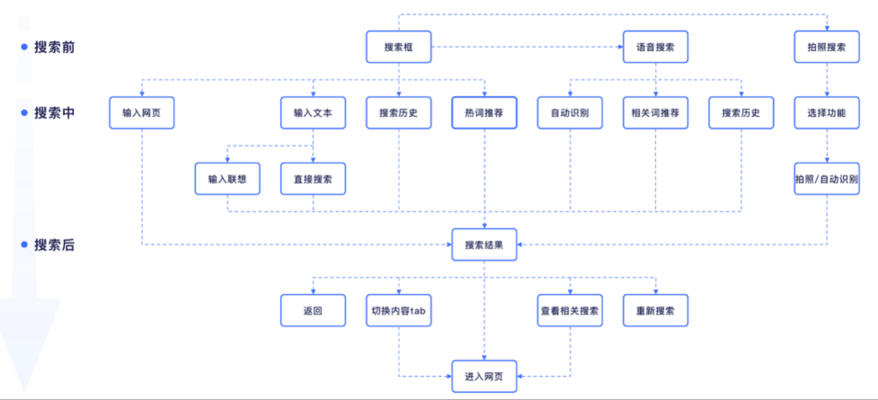 ③涉及到复杂任务/页面的跳转逻辑时(结构层),以流程图的形式呈现其页面逻辑关系: